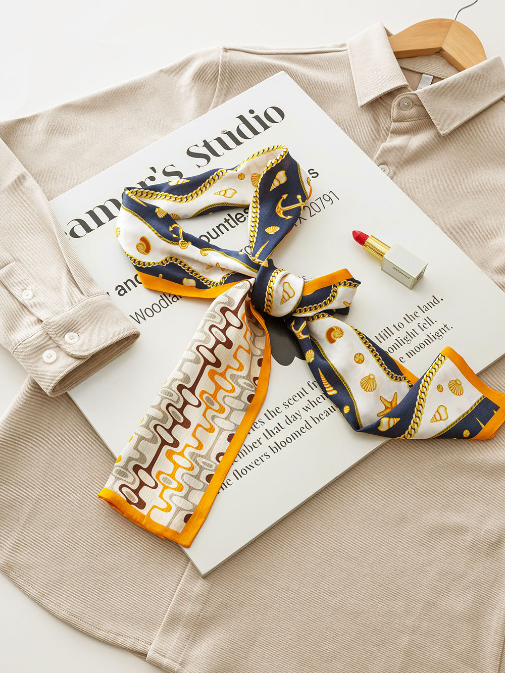 ZSCJ41 Shell Chain Silk Double Layer Wide And Narrow Scarf